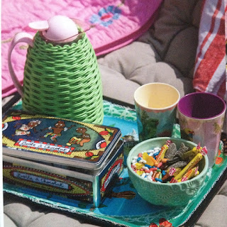 From the front cover to the last pages you are treated to a mesmerising load of cheery offerings...  from sunny vintage caravans, bright beautiful linen awnings to heady secret garden hideaways. So all you bright hue haters listen up...